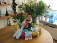 Ze is die avond verrast door de leden en bestuur met bloemen, kado bonnen en bolletjes wol.